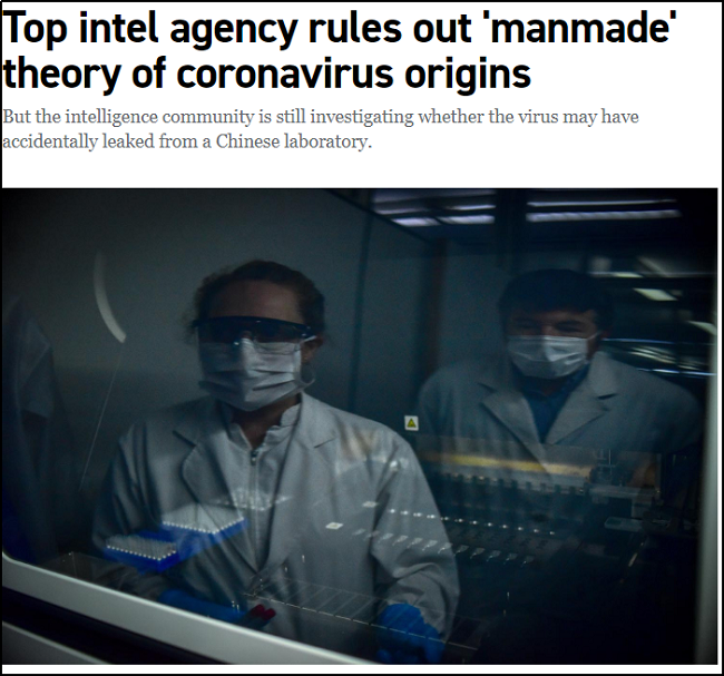 4月30日,美国国家情报总监办公室就公开发表声明,表示“情报界同意科学界的广泛共识,即新冠病毒并非人造,亦未经过基因改造”,“病毒是人造的”这一观点已被否认。