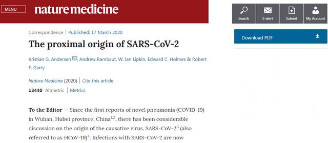 美国斯克里普斯研究所专攻免疫学和微生物学的克里斯蒂安·安德森(Kristian Andersen)博士在《自然医学》期刊发表论文,将新冠病毒与其他六种已知感染人类的冠状病毒进行对比,研究后得出结论,新冠病毒并非人造。