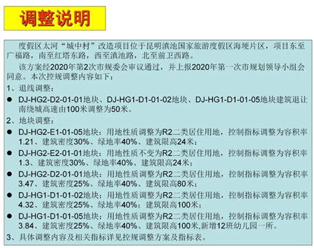 昆明信息港讯(昆明日报 全媒体记者孙莹)昆明市自然资源和规划局日前发布《昆明滇池国家旅游度假区太河“城中村”改造项目控制性详细规划调整方案》,此次涉及的5块、共278.55亩用地均调整为居住用地,且将在南绕城高速旁的一地块,新增一所12班幼儿园。