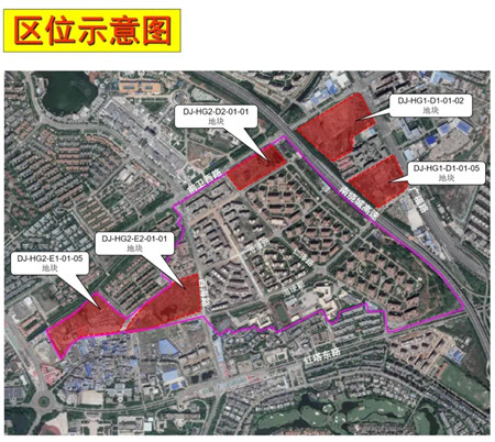 此次调整涉及的DJ-HG2-E1-01-05地块与DJ-HG2-E2-01-01地块位于万和花园西侧和南侧。DJ-HG2-E1-01-05地块,由一类居住用地调整为R2二类居住用地,控制指标调整为容积率1.21、建筑密度30%、绿地率40%、建筑限高由12米增加至24米;DJ-HG2-E2-01-01地块用地性质不变,控制指标调整为容积率1.3、建筑密度由25%提高到30%、绿地率由45%降低为40%、建筑限高24米。