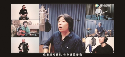 老狼携手一众民谣音乐人隔空合唱《恋曲80》。图为视频截图。