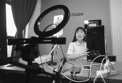 图为5月6日,在位于长兴县的浙江德恩特电器公司直播间内,工作人员通过线上直播的方式介绍新款速热电热水器。新华社 记者徐昱摄