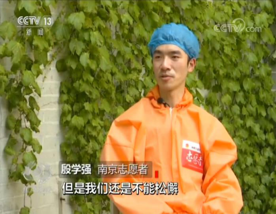 1995年出生的殷学强本职工作是南京一家培训机构的老师。今年1月27日,在河南老家过年的小殷看到了南京团市委发出的疫情防控动员令,就不假思索地订购了返程车票。2月1日,小殷正式开始他在南京南站的防疫工作。这里的志愿者们分为早晚2个班次,每班工作6个小时,人手紧张的时候,很多人都是直接做满一整天12小时。