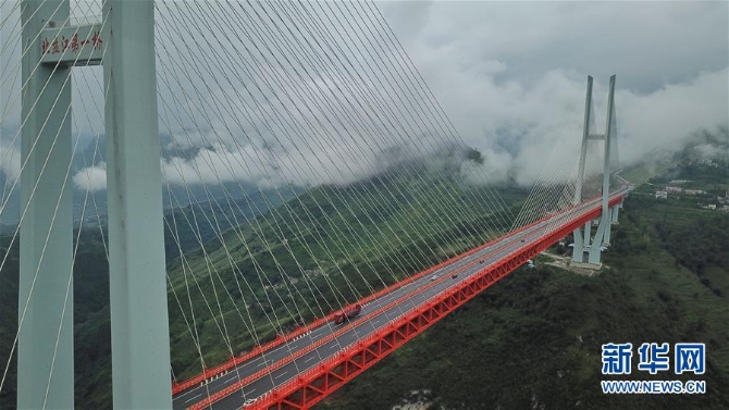 北盘江大桥横越云贵两省,其垂直高度和桥梁跨度为世界罕见。