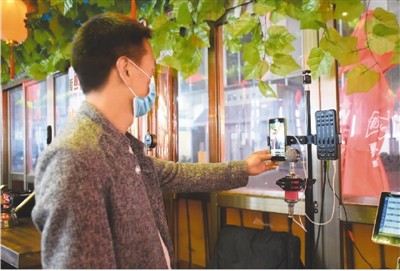 5月4日晚,天津市南开区奥城商业广场一家陕西风味餐厅店员在直播。 新华社记者 白佳丽摄 |