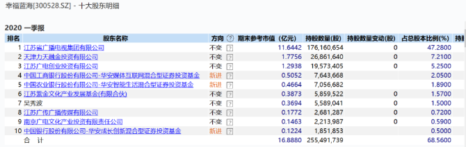 幸福蓝海一季报显示,华安基金三只产品跻身前十大股东。