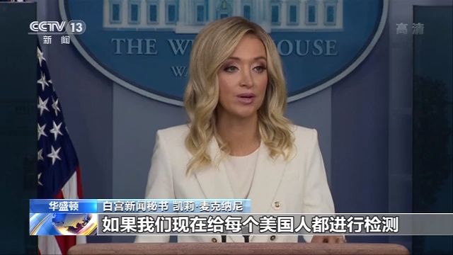 白宫新闻秘书 凯莉·麦克纳尼:美国迄今已经完成了,750万次新冠病毒检测,这是一个非凡的数字。你可以看到,在检测方面,美国领先全世界。