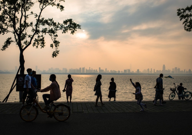 人们在武汉东湖绿道游玩(5月5日摄)。新华社记者 肖艺九 摄
