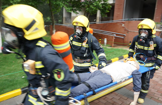 消防队员快速进场控制火情,将楼栋居民紧急疏散至“应急避难场所”,对受惊吓居民进行心理辅导。随后,120救护车快速抵达火灾现场,消防队员将被困受伤人员紧急救护,迅速抬至救护车。经过15分钟的扑救,现场明火被扑灭,为防止复燃,消防队员对现场进行检查和清理。火灾被成功扑灭后,社区用大喇叭通知业主可以安全回家,并用微信告知该楼栋全体业主,火警已解除。