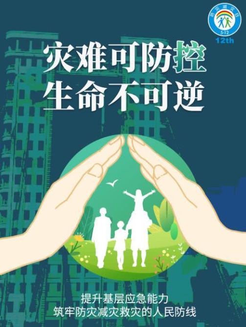 今年5月12日是我国第12个全国防灾减灾日,主题是“提升基层应急能力,筑牢防灾减灾救灾的人民防线”,5月9日至15日为防灾减灾宣传周。