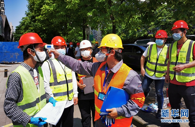 8日,在武汉市春雷建材市场附近的一处5G基站施工现场,工人们经过扫码、测温和全身消毒后进入现场开始施工。“‘五一’小长假期间,我们都一直在施工。”湖北移动公司武汉江岸区建维中心5G项目经理付毅说。为了减少人员聚集、抓好疫情防控和安全规范,施工现场还部署了“云监控”视频系统。“从施工人员开始准备,一直到整个站点完工,全程进行云上传。后台随时监控施工中有没有违规操作,有没有风险防范意识不达标等行为。”