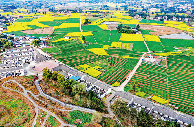 图为2020年3月8日航拍的四川省眉山市仁寿县珠嘉镇棚村村易地扶贫搬迁安置点与后续产业发展景象。人民图片 潘帅/摄
