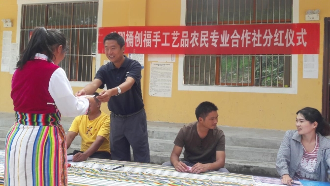 中交集团扶贫干部创办的秋那桶村创福农民手工艺品专业合作社在举办分红仪式