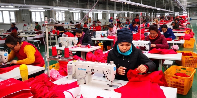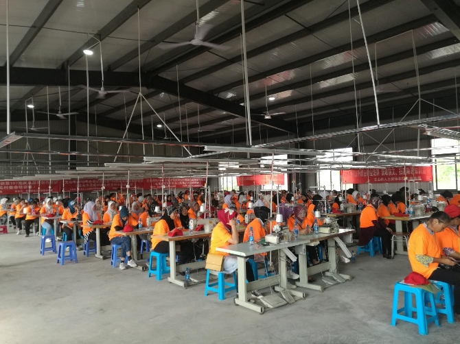 中国石化在新疆柯坪县引进的兴科服饰公司项目生产车间