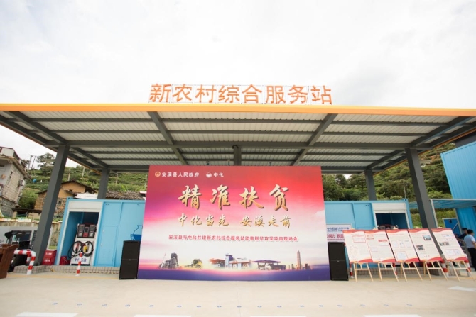 中化集团实施“万村千店加油站扶贫”计划,与福建安溪县合作共建新农村综合服务站。服务站配有农资超市、便利店、撬装加油和太阳能发电装置,具有车辆救援和医疗救助功能。服务站人员从贫困户中招聘,带动更多贫困户就业,确保稳定脱贫,贫困地区农产品纳入服务站便利店销售渠道。模式引起广西、湖北等地借鉴并建设扶贫加油站。