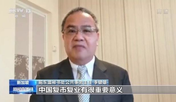 前东盟秘书处公共事务主任 李键雄:中国复市复业有很重要意义,首先它对市场起到了定心丸的作用,中国是世界最大的消费市场之一,也是重要的制造业中心,当工厂复工复产商业逐步复市复业,传递出经济复苏的信号,这非常重要。