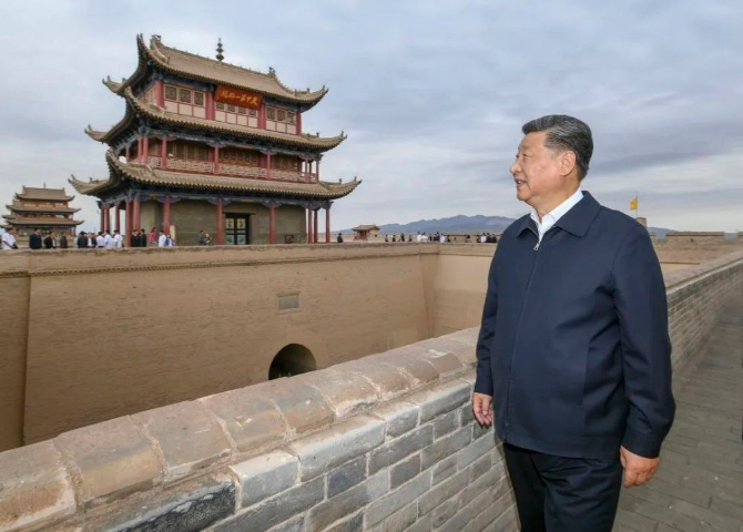 习近平考察嘉峪关关城(新华社记者谢环驰 摄)