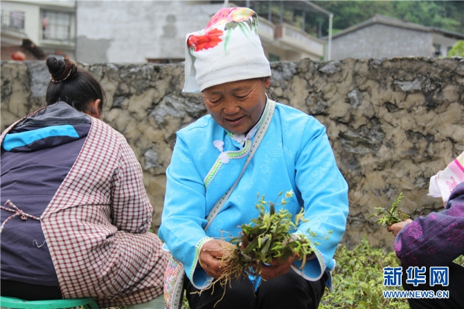 4月25日,当地村民在摘石斛。(新华网 李昀瞔 摄)