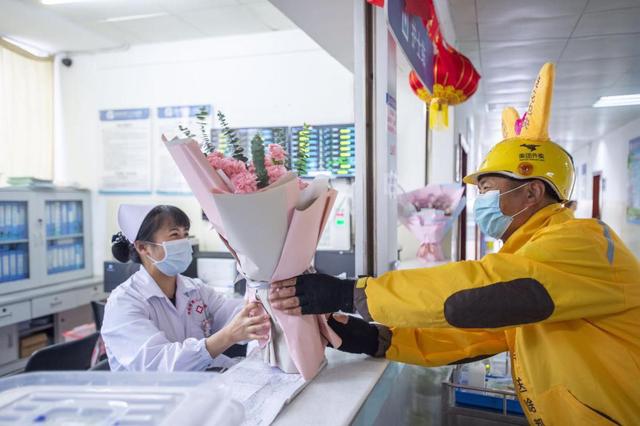 “我都懵了。”昆明市第三人民医院的一位护士接过外卖骑手递来的一束康乃馨时候,不由自主地说,“我并没有买过花。”“节日快乐!这是我们公司送给您的节日礼物,疫情期间辛苦了!”