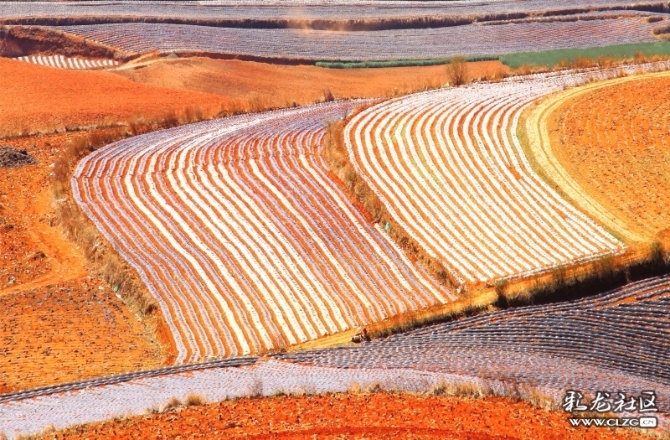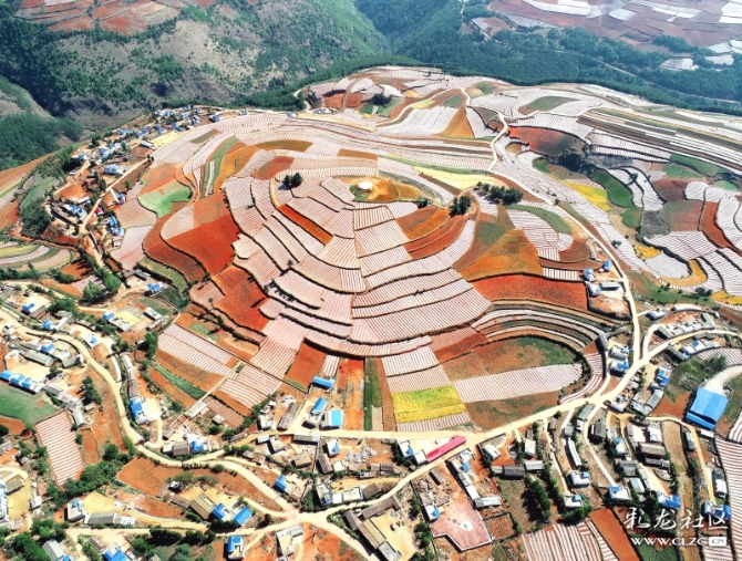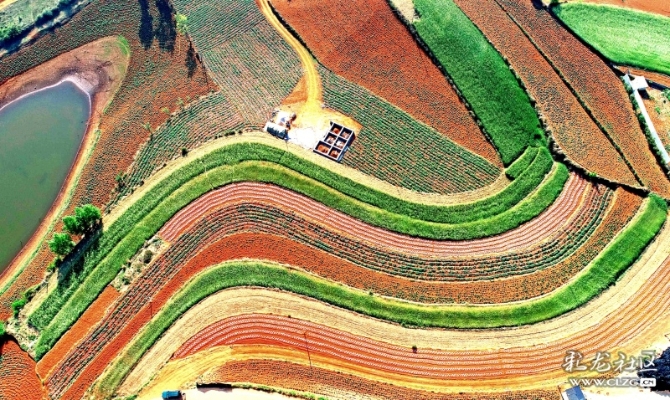 红土地,以特有的乡村地藐景色成为云南最美风景的标志。东川红土地出名了,而寻甸红土地也将出名。近几年在跟踪记录寻甸红土地中对其有了基本的了解和认识,寻甸红土地在流转使用、劳动力转移和农村土地开发上不逊色东川,而且在脱贫攻坚之年越做越好。从人们立体视觉上看,可以说地块面广、点多、线长、好看,路好走,不同耕种类型的红土地呈现了丰富多彩的色块,像似新农人在红土地上弹奏出响亮而醉美的旋律。