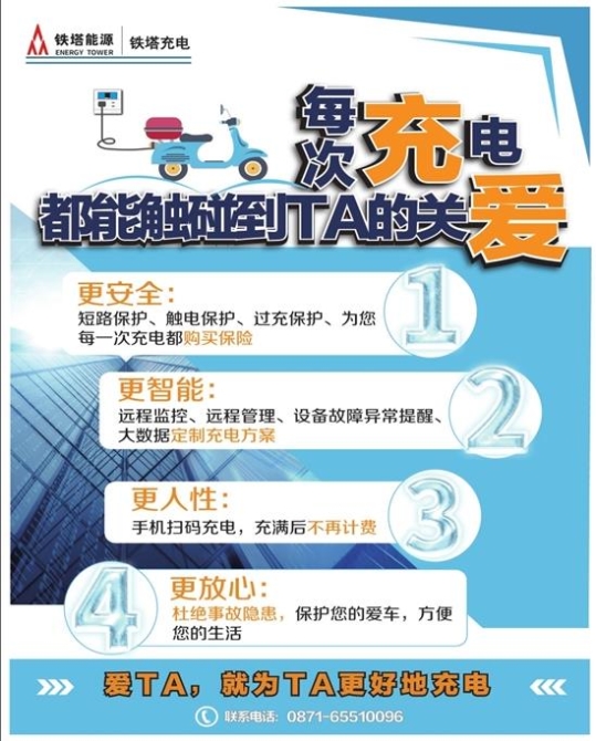 中国铁塔云南分公司相关负责人介绍,铁塔智能充电桩全省已建设数千个小区,已覆盖大部分区县,预计全年建设十万以上端口,覆盖数百万人群。同时充电桩使用起来十分方便,只需使用手机微信、支付宝扫描充电桩上的二维码,并选择相应的充电时长,电动车充电时间结束即自动断电,非常安全方便。有需要建设的物业公司和客户可以与当地铁塔公司联系。