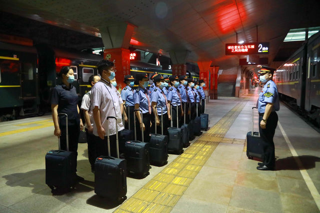 5月10日晚,北京西至成都的T7次列车终到成都站,旅客下车及工作交接完毕后,列车长组织职工集合退乘点名。李锴/摄