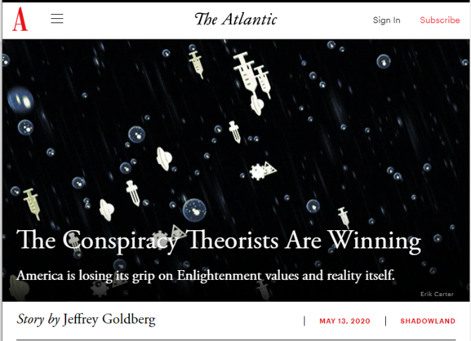 △《大西洋月刊》报道,阴谋论的胜利:美国启蒙运动以来的民主价值观在一步步走向灭亡。