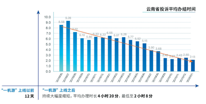 “一机游”模式带动区域社会发展。只要在云南,都能通过智慧厕所、识花识草、智慧停车场等功能,以及快速的网络体验到高品质的公共服务。值得一提的是,他们首创“1+16+129+X”省、州(市)、县(市、区)指挥中心和企业联动的全域旅游投诉体系,支持投诉办理进展实时查看,重构旅游行业监管流程,使得云南旅游投诉平均办结时间缩短为4小时20分。