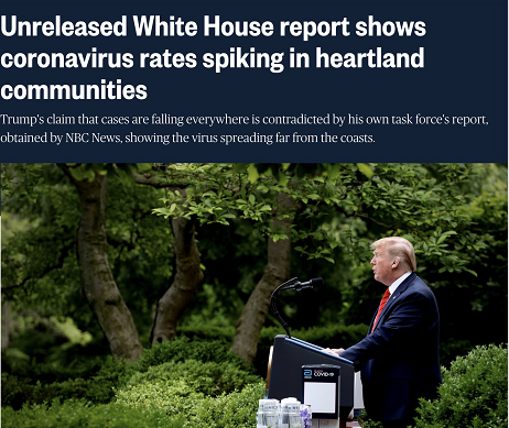 NBC5月12日报道《白宫内部报告显示病毒仍在美国腹地传播》