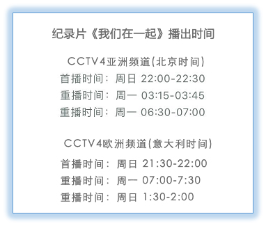 席卷全球的新冠疫情牵动世界人民的心,中国与世界各国加强抗疫国际合作,共同应对挑战。5月17日22点,以中、意两国共同抗击疫情为主题的纪录片《我们在一起——中意携手 同心抗“疫”》将在中央电视台中文国际频道《中国缘》栏目亚洲频道播出,意大利时间5月17日21点30分在欧洲频道播出。