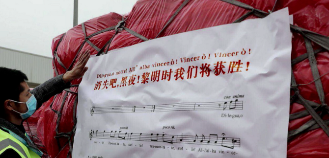 山川异域,同担风雨。2020年适逢中意两国建交五十周年、中意文化和旅游年,两国人民守望相助、共抗疫情,为灾情笼罩下的世界留下了很多振奋且温暖人心的感人时刻,两国人民的友谊也在这场人类的共同灾难中进一步升华。中国与意大利拥有古老的文明与友好交往,古丝绸之路见证了两国千年的文明互鉴。意大利也是第一个加入“一带一路”的G7国家,通过此次疫情,中意两国同舟共济、患难与共,再次坚定地站在一起,携手同心,续写丝路友谊的新篇章。“消失吧,黑夜!黎明时我们将获胜”,该片为中意两国共同抗“疫”的难忘瞬间留下了宝贵的视频记录,传递出共建人类命运共同体的正能量。