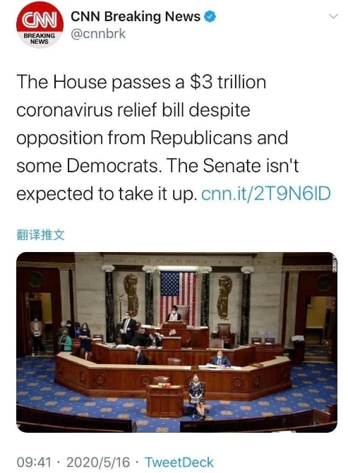 △CNN社交媒体账号发文称:美国众议院在部分反对声中通过3万亿美元的疫情纾困法案