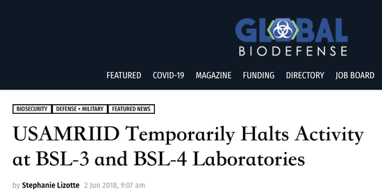据“全球生物防御”(Global Biodefence)网站报道,在疾控中心最后一次实地检查之后,美国陆军传染病医学研究所已于3月27日全面恢复运行。