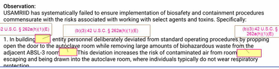 2019年早些时候,美国陆军传染病医学研究所报告了两起泄漏事件。实验室系统未能执行生物安全和遏制程序,以充分控制BSL-3和BSL-4实验室产生的选定试剂或毒素。