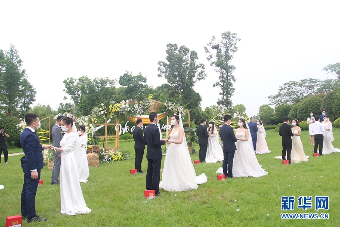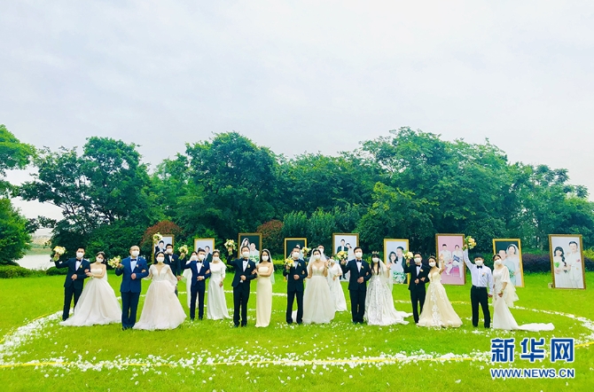 5月20日,位于武汉市经济技术开发区的一家酒店联合多家单位为十对抗疫英雄举行了公益集体婚礼,新人们在众人的见证和祝福下步入婚姻殿堂。酒店特意为新人们提供了浪漫婚房、特别定制的自助餐、婚礼蛋糕等。