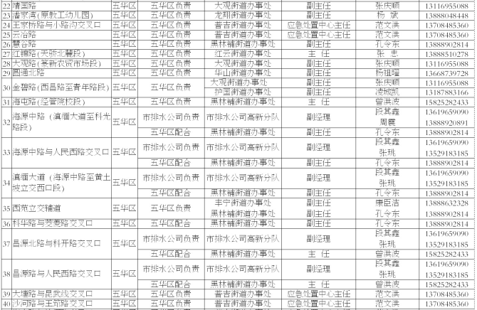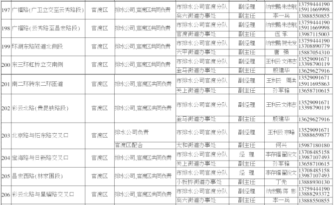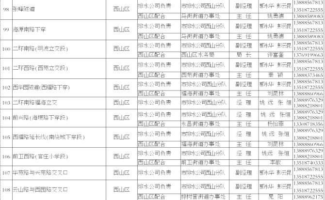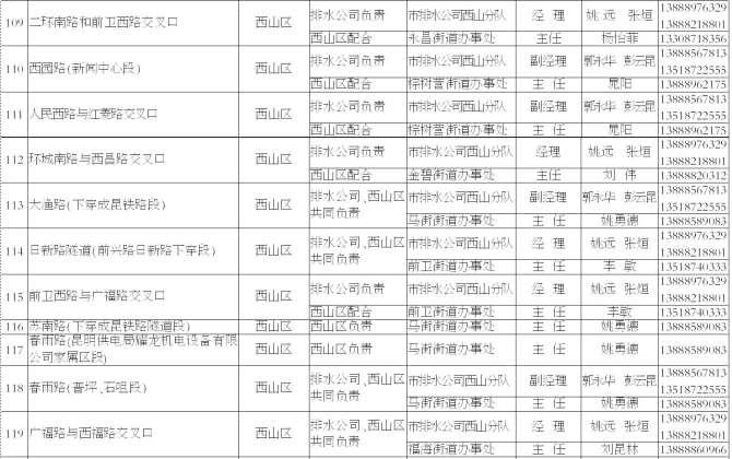 由于昆明特殊的地理和气候特点,进入主汛期后,降雨时空分布不均,极易出现局地单点暴雨,引起城市内涝。对此,汛期前,全市各级防汛部门已组织对全市范围内的重要设施、防汛准备、主城区范围内易涝淹水点等开展督查检查和排查。并根据各单位上报,经复核,昆明城市防汛指挥部明确并公布了2020年昆明城市防汛责任人。各级各部门、各防汛责任单位及责任人将认真履行防汛工作职责,全力以赴抓好城市防汛度汛工作,确保昆明城市防汛安全。与此同时,进一步明确主城区易涝区域、立交桥下层、下穿隧道、地下车库、闸门、泵站的责任人和责任内容,建立上下联动的工作机制。要求主城各区对辖区内所有易淹水点认真梳理研究,按照“小雨不积水、大雨退水快”的原则制定“一点一策”永久或应急整治措施,实施工程整治。同时,针对汛期可能出现的强降雨,完善应急预案,落实设备、队伍和抽排路径,确保淹积水得到及时有效处置。