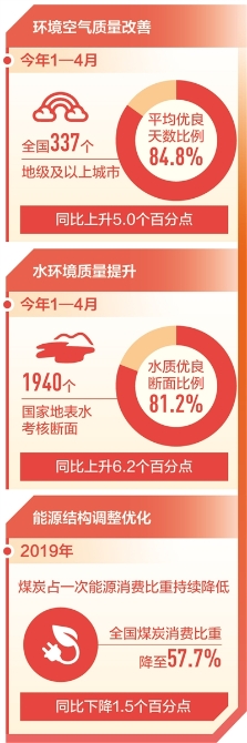 去年以来,我国污染防治攻坚战取得关键进展,主要污染物排放量继续下降,生态环境总体改善,“十三五”规划涉及环保的9项约束性指标,有7项已提前超额完成。截至去年底,全国1940个国家地表水考核断面中,Ⅰ—Ⅲ类水质断面比例为74.9%,同比上升3.9个百分点。