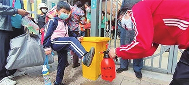 五华区江滨幼儿园也迎来了大班幼儿入园。幼儿园为入园早已做好了一切相关准备。家长和孩子们在老师们的指引下都间隔1米,根据流程有序进入幼儿园。同时,家长们向各班级老师提交个人健康申请表、体温检测记录表、安全防疫承诺书等幼儿健康资料。此次的入园跟以往有所不同,幼儿园的老师们共同把好幼儿入园前的第一道关口。鞋底消毒、书包消毒、免洗手液洗手、测量体温一系列的操作程序确保入园幼儿的健康。