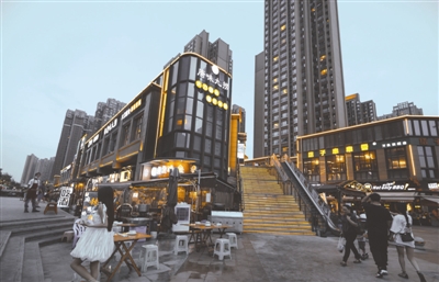 成都万年场街道万象润街特色商业街区,允许商贩临时占道经营。来源:成都商报