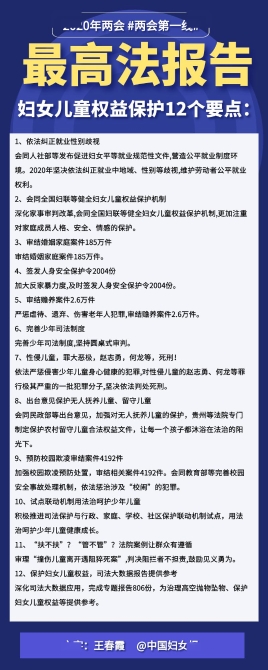 最高法报告妇女儿童权益保护12个要点: