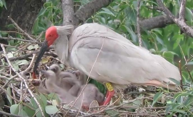 近日,在陕西省宝鸡市千湖湿地鸿沟朱鹮繁殖区一对朱鹮产下了4枚卵,这是2014年朱鹮在千阳千湖湿地放飞以来产卵首次一窝4枚,打破历史纪录。5月16日至5月20日,这4枚卵陆续破壳而出。新生命的顺利孵出,为朱鹮保护工作者带来了收获的喜悦,增加了信心。