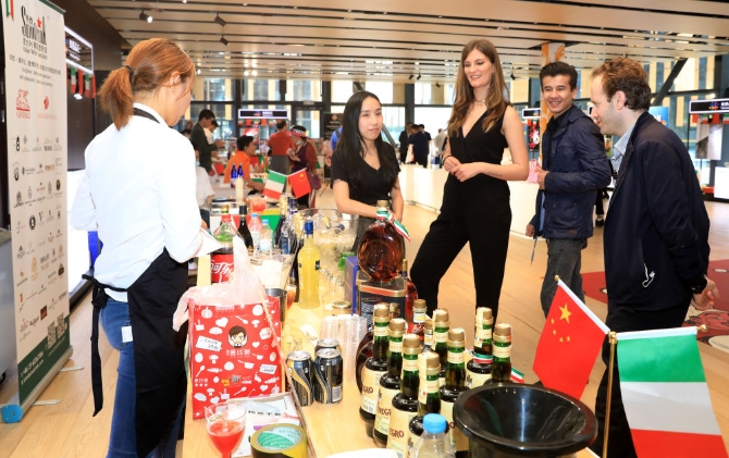 5月8日,嘉宾在一家意大利酒类企业的展台前驻足观看。当日,虹桥品汇国别文化节云游意大利主题展在上海虹桥进口商品展示交易中心举行。意大利是第二届中国国际进口博览会主宾国,越来越多的意大利企业已经加入了进博会朋友圈,在中国开展经贸业务。新华社记者方喆摄