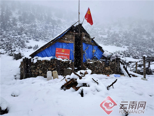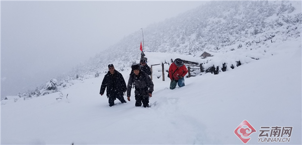 云南迪庆夏日降鹅毛大雪 民警䠀齐膝大雪巡逻