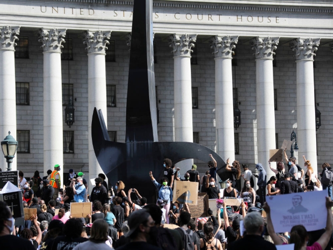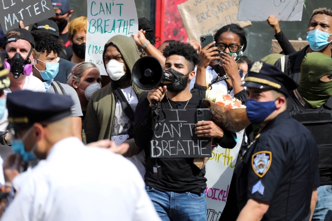 纽约民众抗议警察粗暴执法致非裔男子死亡