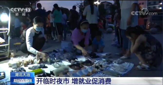 为应对疫情带来的影响,激发消费潜力,日前,湖北黄石大冶市开放三处临时夜市市场。广场两边摆满了地摊,现场吸引不少市民前来消费。