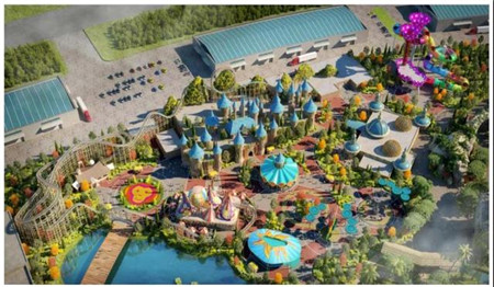 项目建设内容包含各类室内外游乐设备设施、演绎项目、餐厅、零售商业等综合配套项目,以及景观工程、后勤办公等配套设施。