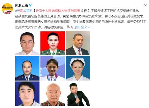 云南十大励志榜样人物评选结果日前揭晓。此次评选活动于2019年3月18日启动,获得社会各界的广泛关注,各州市县机关工委、团委、部队、医院、学校、各社会组织和创业企业纷纷向组委会推荐参评人物。参评人物中,年龄最大的84岁,最小的11岁,大多数是20至40岁的奋斗青年。