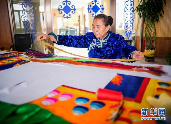自幼随祖父和母亲学习马鬃绕线蒙古唐卡的制作技艺