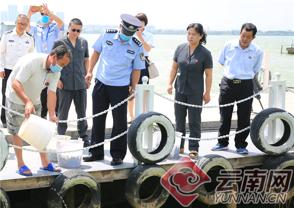 图为安宁市法院在滇池水警码头公开开庭审理一起“电鱼”案。李波 摄