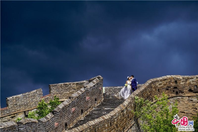 从戚继光雕像的那个入口上城墙,毫无防备的雨又下了起来,“山里的一片云就是一阵雨”,景区带路的小姑娘说的,“这样的天气运气好,是可以出大片的”,对于颇有心得摄影老师们来讲,大风中爬向高高的将军楼,一对情侣在拍婚纱,风吹起白色的裙角飞舞着,两人相拥相吻,脚下是坚实厚重的长城,背后的天空是乌云翻滚,这幅大气之相中又多了一份浪漫和温馨,更是有着那份风雨同行坚定的感动。